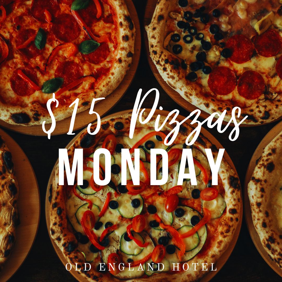 • Welcome to $15 Pizza Night! Starting Monday 15th Feb, in the Front Bar only. Choose from a variety of toppings, made fresh & coming to you HOT!! T